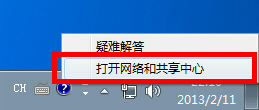 在 Windows 界面的右下角右击网络图标,并点击 "打开网络和共享中心" 。